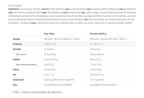 | Analyse nutritionnelle | Pour 100 g* | Par barre de 50 g* |