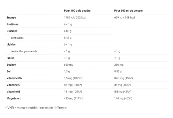 - Boisson énergétique (1) isotonique et antioxydante (2).