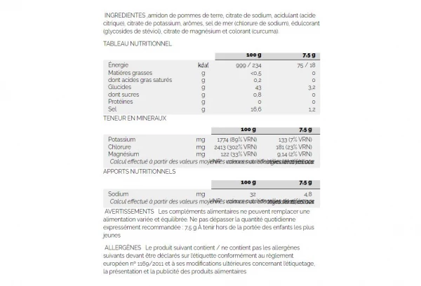 Chaque prise d’Hydrazero apporte 500 mg de sodium, ce qui permet d’améliorer l’hydratation et offre un meilleur équilibre des fluides corporels.