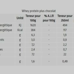 Recovery Drink contient environ 40 % des meilleures protéines, ce qui équivaut à 20-25 g de protéines par ration.