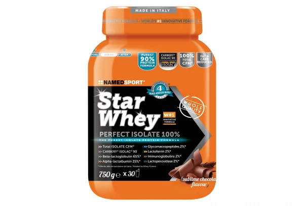 - Protéines de lactosérum isolées Isolac® 90 (contient émulsifiant : lécithine de soja), cacao en poudre, NAMED 4PROTEIN MATRIX® [colostrum bovin (issu du lait), graines de fenugrec (Trigonella foenum graecum L.), mélange de protéases*] tit. à 2% en saponines stéroïdes totales et 0,04 en diosgénine, arômes, édulcorant : sucralose, vitamine B6 (chlorhydrate de pyridoxine), vitamine B2 (riboflavine), vitamine B1 (chlorhydrate de thiamine). *Activité enzymatique standard de la protéase min. 350 HUT/mg. SANS GLUTEN.