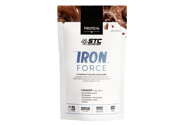 IRON FORCE associe 40% de protéines natives et 44% de glucides (ratio optimal 1/1) à de la créatine*, pour un développement de la puissance et du volume musculaires. Issues de 3 sources complémentaires (poudre de lait, concentré et hydrolysat de lactosérum) et obtenues par des procédés à froid, les protéines d’Iron Force restent intègres et préservent ainsi toutes leurs qualités nutritionnelles. Elles disposent d’une haute valeur biologique (IC = 113) pour le maintien de la puissance et de la force musculaire.