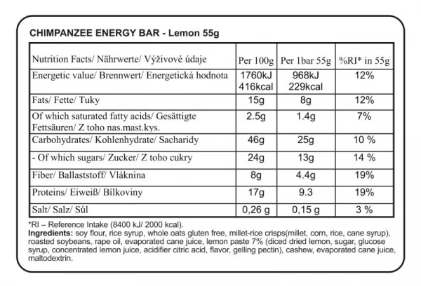 Rafraîchissant, impressionnant, simple, délicieux plein d’énergie. Tous les ingrédients naturels, sans gras trans, sans OGM, il est fabriqué à partir de la vraie nourriture. La barre d’énergie Chimpanzé Citron contient une grande quantité de protéines et de fibres et est une excellente source d’énergie naturelle.