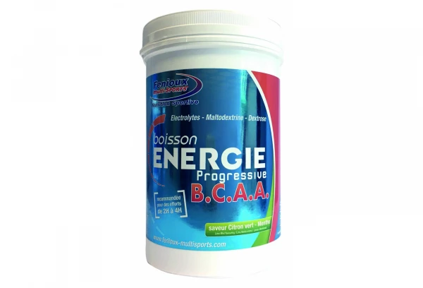 Dextrose ( 60% ), Maltodextrines ( 34.38% ), L-Leucine ( 1.5% ), Correcteurs d’acidité : bicarbonate de sodium, citrate tripotassique, Sel, L-isoleucine ( 0.75% ), L-valine ( 0.75% ), Arômes, Vitamines : C, B1 Arôme, Colorant : bétacarotène, Vitamine B1