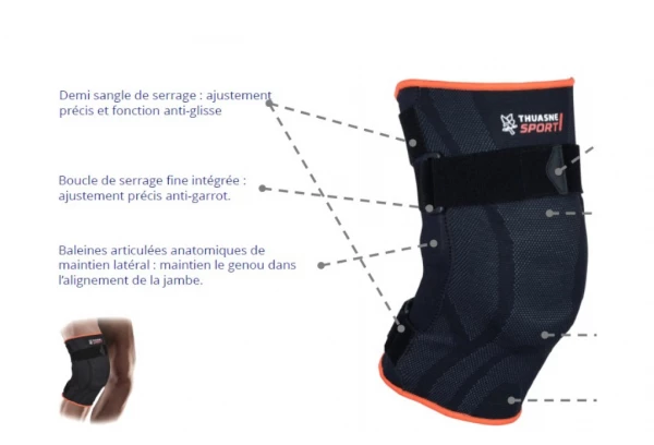 Genouillère offrant un parfait maintien du genou en phase de reprise d’activité.