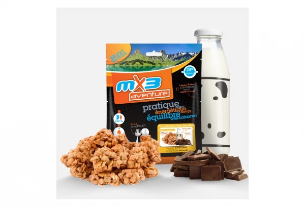 Le muesli au chocolat lyophilisé MX3 est le petit-déjeuner idéal avant d’entamer un effort. Recette lyophilisée gourmande au bon goût de cacao, avec de savoureuses céréales.