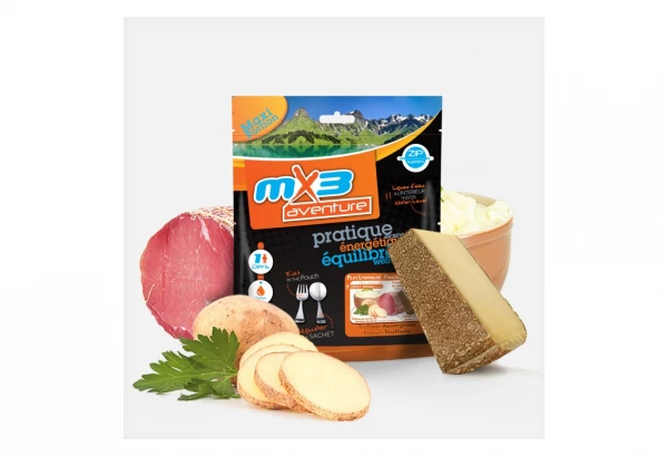 Recette typiquement montagnarde, notre truffade auvergnate lyophilisée est un gourmand mélange de pommes de terre, de cantal et de jambon.