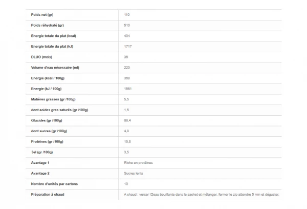 Une fine purée de pomme de terre et de vrais morceaux de poisson, la brandade de morue instantanée « Voyager » apaisera les plus gourmands.