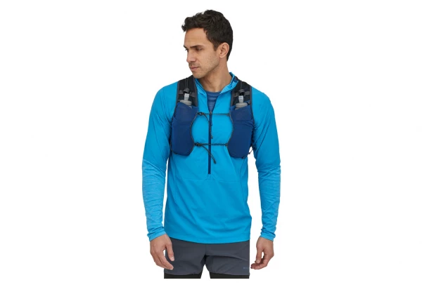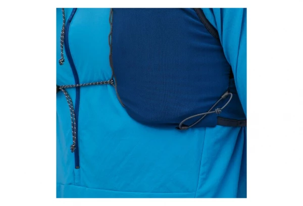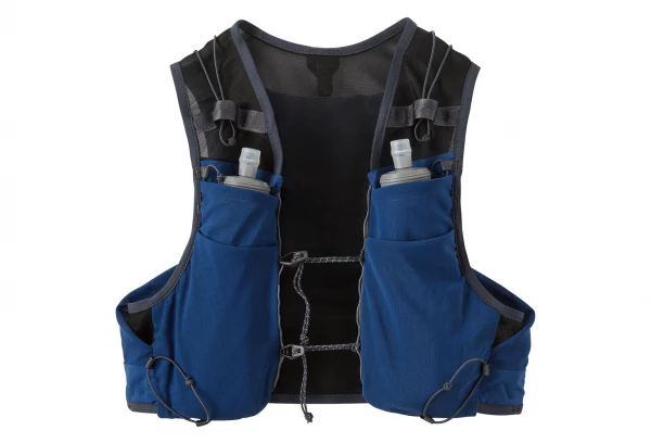 Conçu comme un vêtement, ce gilet de trail running reste bien à plat contre le corps lorsqu’il est vide, mais peut transporter tout le nécessaire pour les courses longue distance, grâce à ses bretelles intérieures réglables, ses empiècements stretch et ses poches poitrine extra-larges, toutes accessibles pendant l’effort.