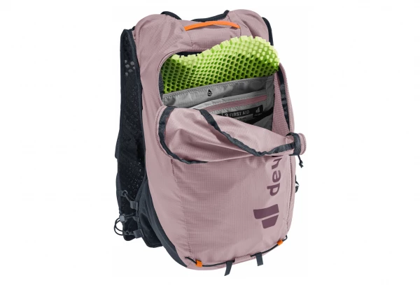 Léger et confortable : des bretelles ergonomiques en forme de gilet avec sangle de compression élastique, des sangles de poitrine réglables et un matériau dorsal souple permettent au sac à dos de s’adapter à la partie supérieure du corps. En outre, la poche interne en filet et les sangles de compression latérales minimisent les mouvements de haut en bas de la charge lors de la course. Le porte-bâtons situé sur la bandoulière permet d’accéder rapidement aux bâtons. Une gourde souple et un GPS sont également toujours à portée de main dans les poches situées sur les bretelles. Le matériau principal du sac à dos Trailrunnig est 100% recyclé et certifié bluesign®.