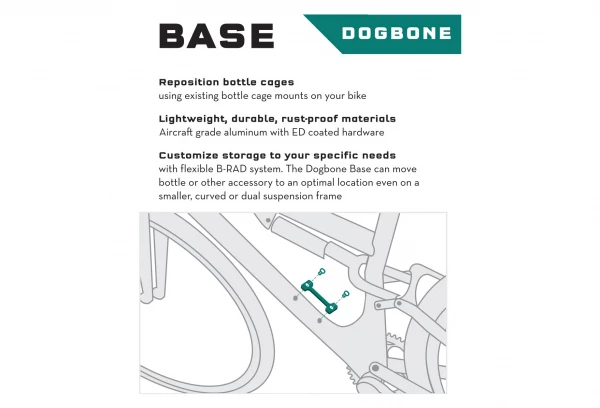 Le support de porte-bidon Wolf Tooth B-RAD Dogbone peut déplacer un bidon ou un autre accessoire vers un emplacement optimal. Il est le plus souvent utilisé pour un cadre plus petit, incurvé ou sur un tout-suspendu.