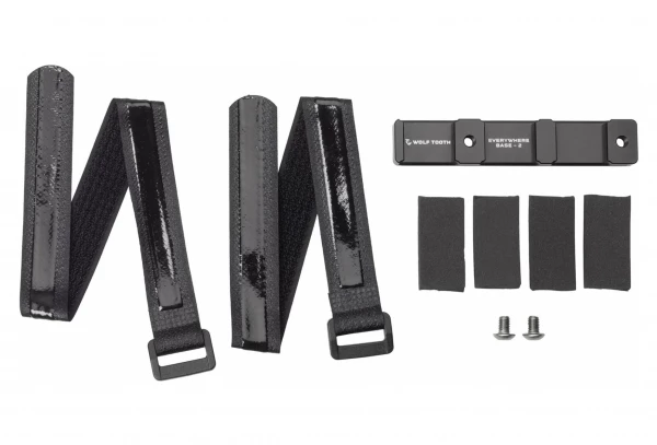 Le support Wolf Tooth B-RAD Everywhere Base est un support polyvalent qui permet aux cyclistes d’ajouter un porte-bidon sur le cadre, là où il n’y a pas de fixations prévues à cet effet. Les sangles auto-agrippantes avec dos en silicone qui fixent le support B-RAD Everywhere au vélo sont adhérentes et peuvent facilement être installées ou repositionnées selon les besoins. Le support Everywhere peut fonctionner comme un support B-RAD, en décalant les fixations de porte-bidon existantes jusqu’à 22 mm pour faire de la place pour les sacoches de cadre, les amortisseurs ou d’autres accessoires.