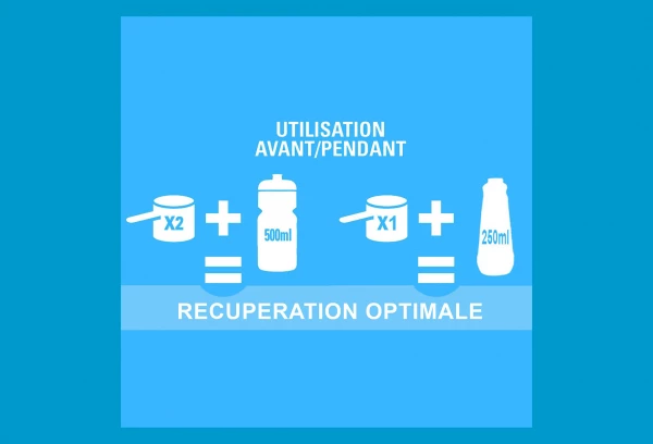 Mélangez 2 cuillères de mesure (60g) dans 500ml d’eau. Pour un meilleur goût, vous pouvez remplacez l’eau par du lait de vache, de soja ou d’amande ! Boisson à consommer une fois par jour. Pour de meilleurs résultats, buvez la boisson de récupération dans les 30 minutes qui suivent votre entraînement.
